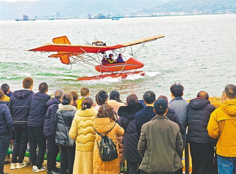 2月4日,游客在四川省閬中市嘉陵江旅游度假區(qū)體驗(yàn)低空觀光。梁 德攝(中經(jīng)視覺)