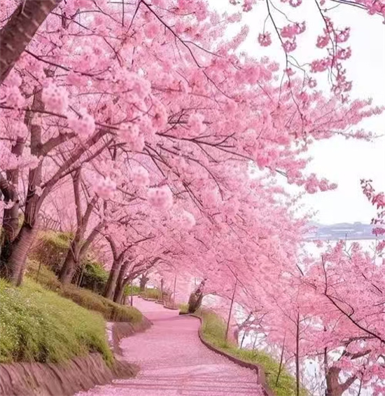 霧社櫻率先登場,花朵小巧玲瓏,潔白中透著粉嫩,猶如嬌羞的少女,在枝頭悄悄綻放,拉開了櫻花季的序幕;香水櫻香氣撲鼻,微風拂過,甜香四溢,讓人心曠神怡;八重櫻花朵碩大,層層疊疊的花瓣簇擁在一起,盡顯雍容華貴;富士櫻樹形優(yōu)美,花朵密集,粉白相間,宛如一片片云霞;森林皇后則以其獨特的綠色花朵,在眾多櫻花中獨樹一幟,清新淡雅,令人眼前一亮。各種櫻花姹紫嫣紅,絢麗多姿,構成了一幅絕美的春日畫卷。