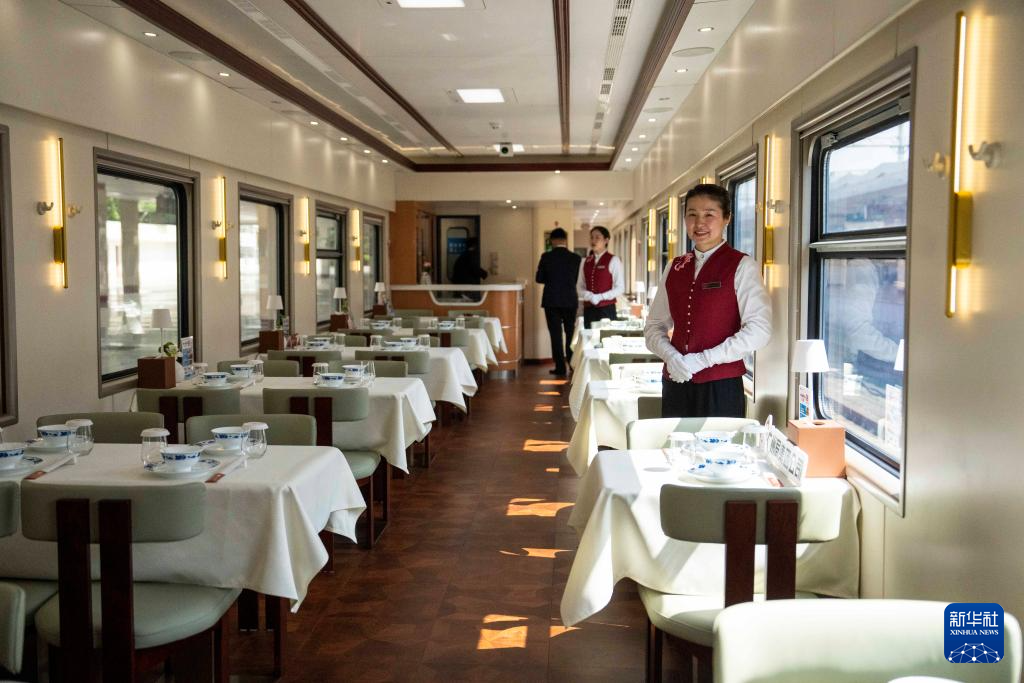 4月25日,在“南方列車·瀟湘號”旅游專列上,乘務(wù)人員在等待旅客上車。