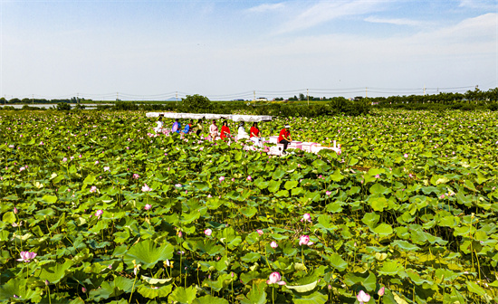 2025年6月24日,安徽省合肥市廬江縣石頭鎮(zhèn)大片盛開的太空蓮與村舍、道路、農(nóng)田交相互應(yīng),構(gòu)建出一幅夏日五彩斑斕的美麗鄉(xiāng)村新畫卷,吸引了許多游客前來打卡、拍照、走秀。