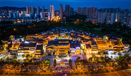 2025年7月22日,大暑節(jié)氣,安徽省合肥市廬江縣崗灣街道特色文化街區(qū)水西門在燈光的掩映下五光十色,流光溢彩,華美氤氳,吸引了許多市民和游客到此打卡,感受盛夏季徽州水墨與書香人文交織的文化氛圍。 (巢志斌 攝)