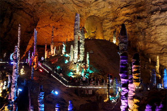 “雙節(jié)”旅游形式的火爆首先得益于斥資千萬(wàn)的燈光改造升級(jí)工程。在4D全息投影和裸眼3D等現(xiàn)代光、影科技的加持下,黃龍洞的壯觀與神秘得到了更加充分的展現(xiàn),美譽(yù)度和關(guān)注度顯著提升。為了有效應(yīng)對(duì)必然到來(lái)的“雙節(jié)”旅游高峰,黃龍洞全力備戰(zhàn),采取了全員上崗、增設(shè)臨時(shí)停車場(chǎng)、增加碼頭運(yùn)力、延長(zhǎng)開放時(shí)間等措施;全體員工秉持“把辛苦和麻煩留給自己,把輕松和舒適讓給客人”的理念,竭盡全力為廣大游客提供細(xì)致周到的服務(wù)。他們的努力與付出,既保障了良好的旅游接待秩序,也為景區(qū)“織就”了一道最美麗的風(fēng)景線,贏得了廣大游客的一致好評(píng)。