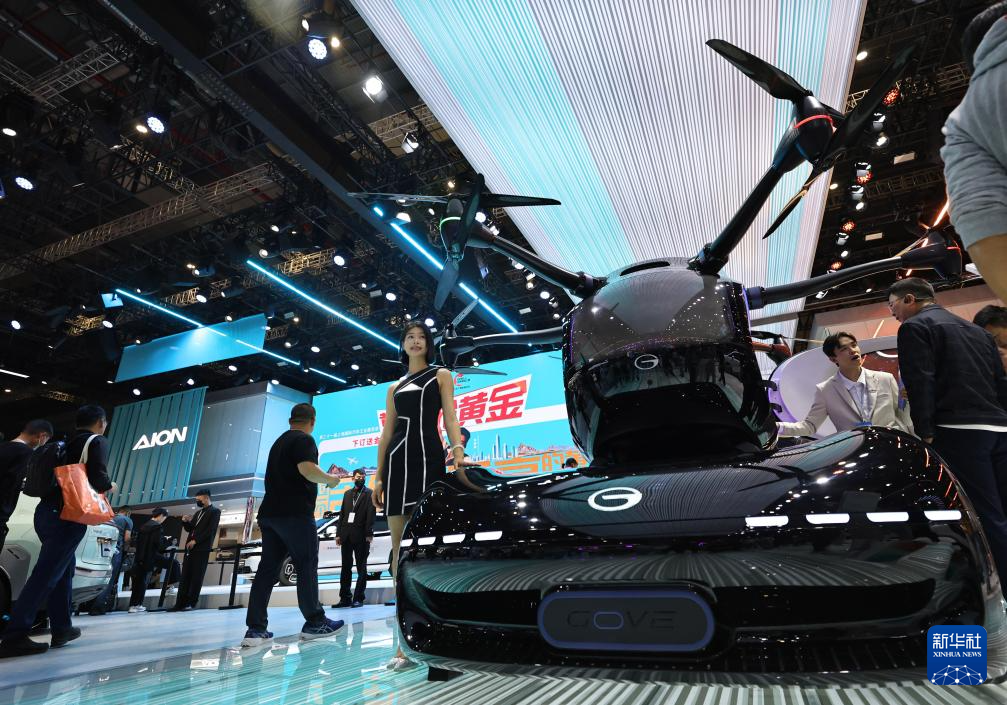 4月25日拍攝的廣汽傳祺品牌展出的一款飛行汽車。
