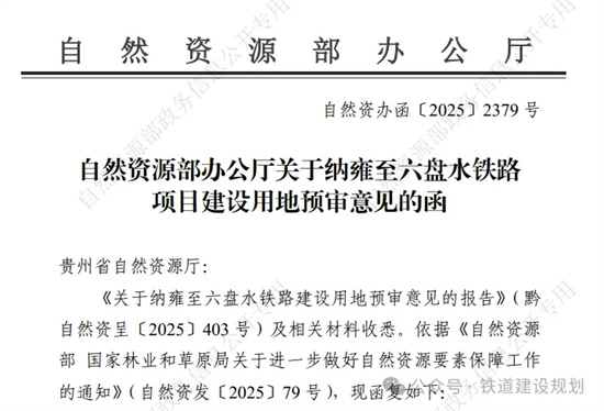 10月20日,自然資源部辦公廳印發(fā)《關(guān)于納雍至六盤水鐵路項(xiàng)目建設(shè)用地預(yù)審意見的函》,項(xiàng)目用地預(yù)審正式獲國家批復(fù),離可研批復(fù)和正式開工又推進(jìn)了一大步。