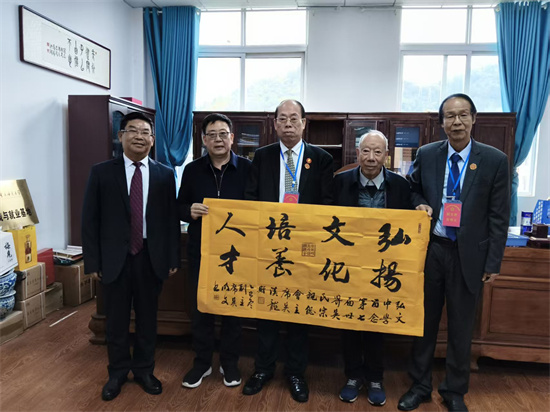 考察結(jié)束,考察團(tuán)一行向畢節(jié)弘文中學(xué)贈(zèng)送了由吳明文書寫的“弘揚(yáng)文化、培養(yǎng)人才”字畫。