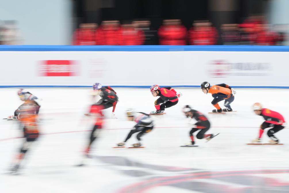 2024年12月8日,中國隊(duì)選手孫龍(后排右二)在短道速滑世界巡回賽北京站男子5000米接力決賽中。新華社記者 鞠煥宗 攝