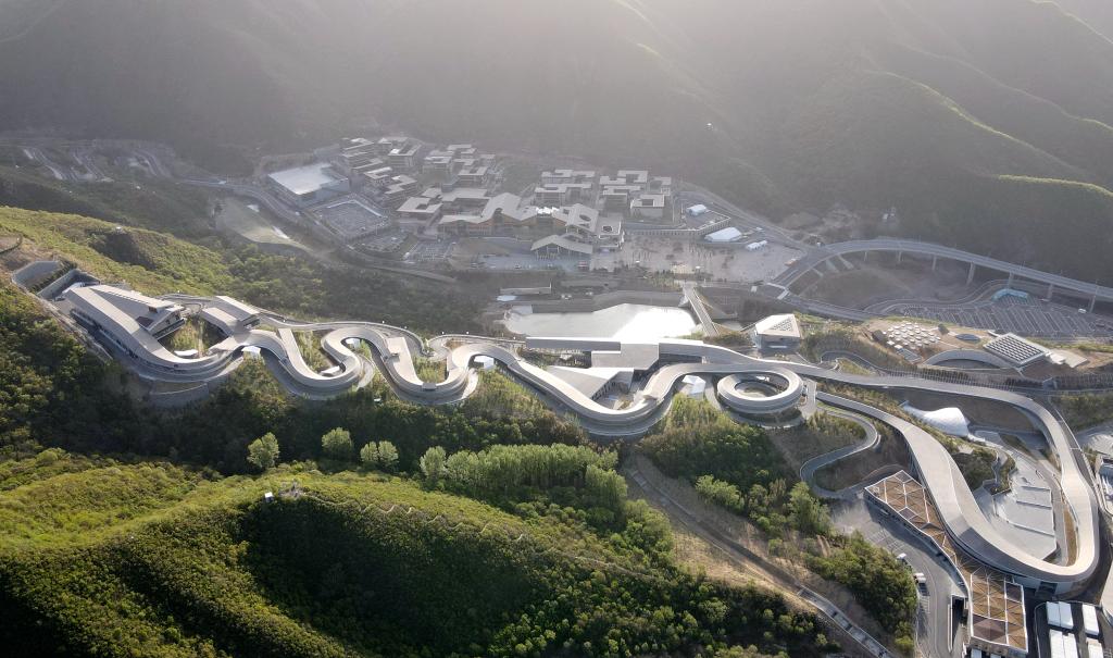 國家雪車雪橇中心(下)和冬奧村(上)(無人機(jī)照片)。新華社記者 張晨霖 攝
