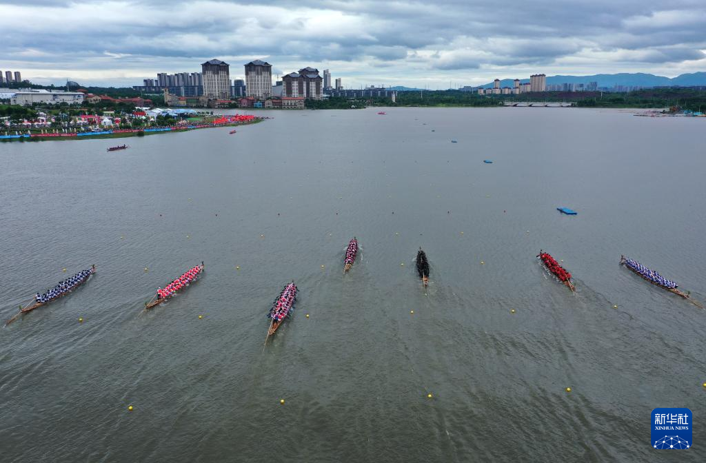 當日,2025中國南昌國際龍舟賽在江西省南昌市紅谷灘區(qū)九龍湖水域開賽,共吸引來自國內外的50支龍舟隊,超1500人參加。本屆賽事采用直道競速賽與表演賽雙軌并行的賽制,共設縣區(qū)組33人龍舟、公開組22人龍舟、高校組12人龍舟三大組別,賽道全長800米。