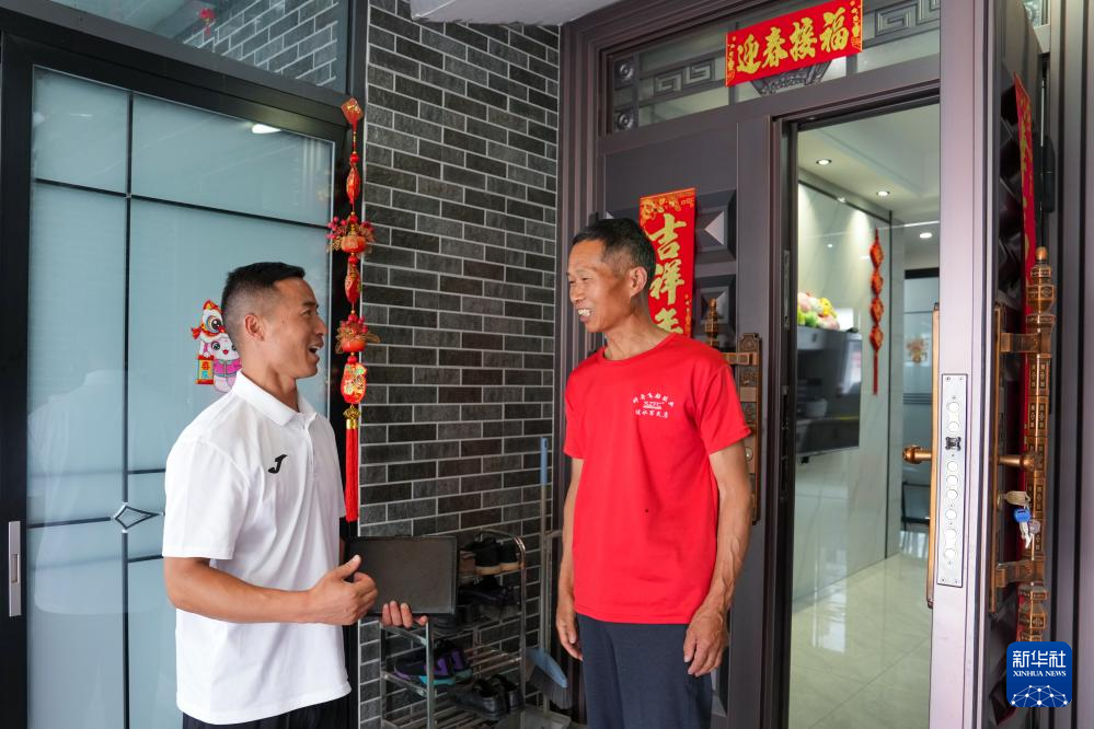 6月23日,戴虎(左)來到韓陳村村民皇星中家走訪。