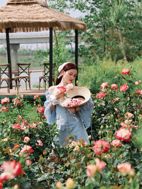 近日,長沙市鵝洲島100多個品種的玫瑰花陸續(xù)盛開,吸引市民和游客前來賞花游覽。一位來自益陽的游客對景色贊不絕口:“這里的玫瑰很漂亮,顏色也多,而且非常香,在這兒散步,真是不錯的賞花地。”手持單反相機(jī)的陳先生正在為女友春春拍攝照片,這片“花海”成為了他理想的取景地:“花海場景如夢如幻,非常出片,特地帶上女朋友春春過來拍一些照片,確實很美。”