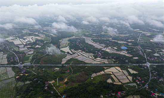 2025年6月22日,在安徽省合肥市廬江縣柯坦鎮(zhèn)大化村,雨后云霧繚繞,蔥翠的茶山與白墻紅瓦的村舍及大片農(nóng)田,勾勒出一幅盛夏季節(jié)的美麗山村新畫卷。