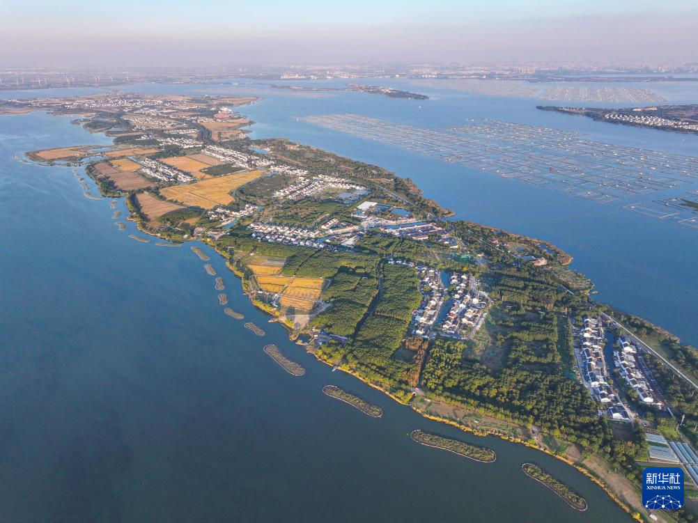初冬時節(jié),江蘇省蘇州市相城區(qū)陽澄湖“美人腿”半島上粉墻黛瓦的傳統民居,與稻田、湖水相映成趣,構成一幅和美的水鄉(xiāng)生態(tài)畫卷。