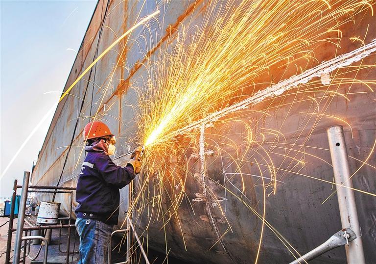 12月1日,江西省九江市都昌造船總廠,工人在趕制船舶訂單。尹 志攝(中經(jīng)視覺)