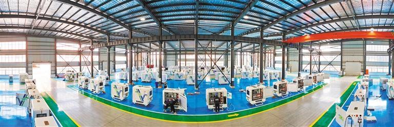 12月10日,江蘇海宏智能科技有限公司生產(chǎn)車間,工人在組裝移動(dòng)儲(chǔ)能智能充電機(jī)器人。耿玉和攝(中經(jīng)視覺)
