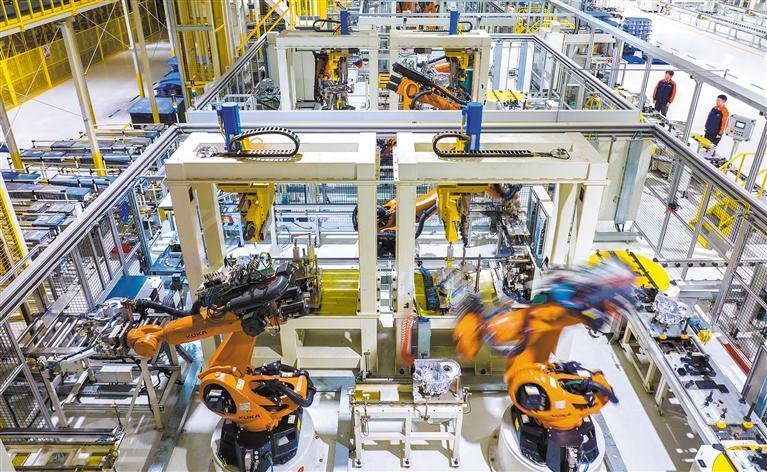 12月4日,位于浙江省湖州市長興縣的吉利長興自動(dòng)變速器有限公司,機(jī)器臂高速“揮舞”,高效加工產(chǎn)品。譚云俸攝(中經(jīng)視覺)