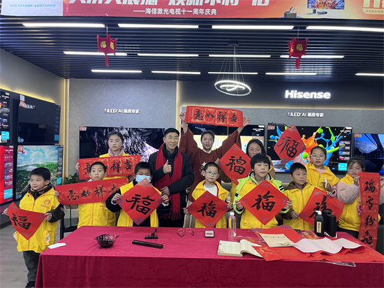 通程電器星沙旗艦店小天才步步高專柜負(fù)責(zé)人表示:“寫春聯(lián)是春節(jié)的重要習(xí)俗之一,洋溢著濃郁的喜慶色彩。大家圍坐寫春聯(lián),或觀看他人寫春聯(lián),孩子們將寫好的春聯(lián)帶回家,貼在門窗上,能使家里和大街小巷充滿節(jié)日的歡樂氛圍,讓人們感受到春節(jié)的熱鬧與祥和,增強(qiáng)節(jié)日的儀式感和團(tuán)聚的歡樂感。值此2025年新年來臨之際,還會(huì)組織竹編、剪紙等迎新活動(dòng),讓孩子們?cè)谵o舊迎新、祈福納祥的同時(shí)傳承文化。”