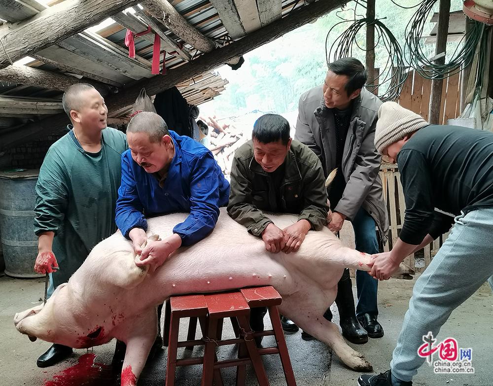 殺年豬喝刨湯,是當(dāng)?shù)剜l(xiāng)村的頭等大事,家家戶戶都來(lái)幫忙,現(xiàn)場(chǎng)熱鬧非凡。何毅攝影