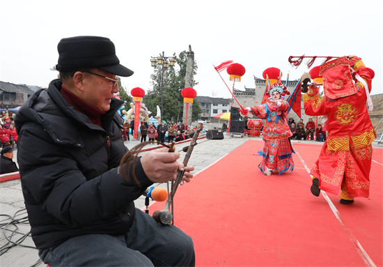 1月30日,在湖南省龍山縣里耶古鎮(zhèn),群眾進行“非遺”文化漢劇表演。春節(jié)假期,該古鎮(zhèn)舉行豐富多彩“非遺”文化慶新年活動,吸引了眾多游客和群眾前來觀賞游玩。(俞采華)