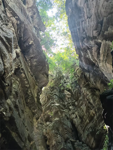 當(dāng)我們的車緩緩駛向峽谷,一路上,山巒連綿起伏,像是大地舒展的綠色披風(fēng),隨風(fēng)搖曳的樹木如同披風(fēng)上鑲嵌的寶石,閃耀著生命的光澤。越靠近峽谷,那份寧?kù)o與清涼便愈發(fā)濃郁,仿佛是大自然伸出的溫柔雙臂,正緩緩將我們擁入它的懷抱。終于,我們抵達(dá)了這片神秘之地,眼前的景象瞬間將我征服。