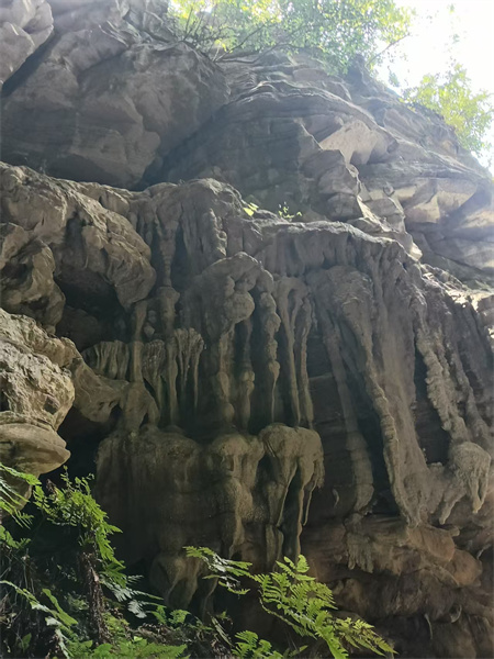 峽谷入口處,大山深處的石塊以一種十分規(guī)則的姿態(tài)疊放在一起,乍一看,酷似泥水工精心堆積而成,難怪它被賦予了“萬(wàn)卷詩(shī)書”這般富有詩(shī)意的名字。這些石塊,猶如一本本古老的書籍,靜靜佇立在時(shí)光的長(zhǎng)河中,每一頁(yè)都寫滿了歲月的故事,等待著有緣人去翻閱、去解讀。撫摸著這些石塊,指尖傳來(lái)的是歲月的紋理,心中涌起的是對(duì)大自然鬼斧神工的驚嘆。