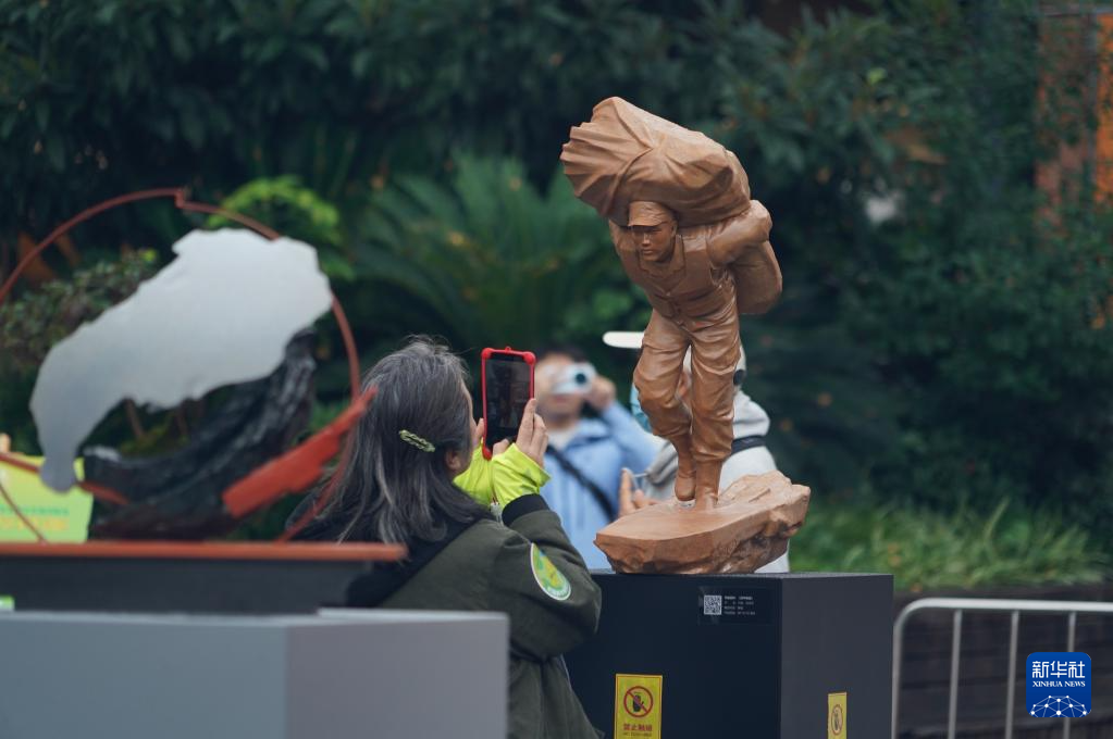 10月24日,觀眾在2025全國(guó)青年雕塑藝術(shù)作品展現(xiàn)場(chǎng)拍攝雕塑作品。