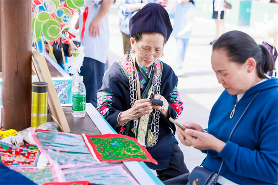 2025年苗族姊妹節(jié)苗繡技能大賽現(xiàn)場(chǎng) 游客正在體驗(yàn)苗繡